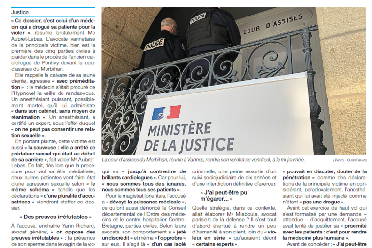 Après 4 années d’instruction, la Cour d’Assises condamne l’ancien cardiologue à 15 ans de réclusion criminelle pour le viol de sa patiente. Les parties…