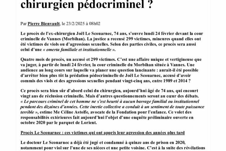 Ce lundi 3 novembre 2025, s’est ouvert l’audience sur intérêts civils devant la cour criminelle du Morbihan dans le dossier Le Scouarnec. Comment indemniser…