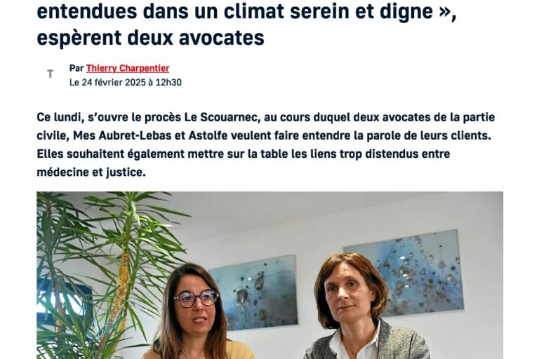 Me AUBRET-LEBAS défendant 24 parties civiles dans ce procès hors norme et Me ASTOLE intervenant pour la Fondation pour l’Enfance, également partie civile, prennent…